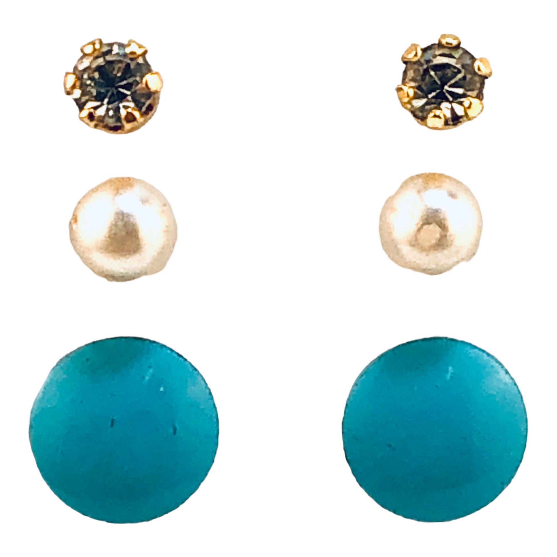 Elevate your everyday style with our versatile set of 3 stud earrings, featuring flat turquoise, faux pearl, and rhinestone designs that add a touch of timeless elegance to any outfit. Perfect for the modern woman on the go, these earrings blend affordability with chic appeal, making them an essential addition to your jewelry collection.