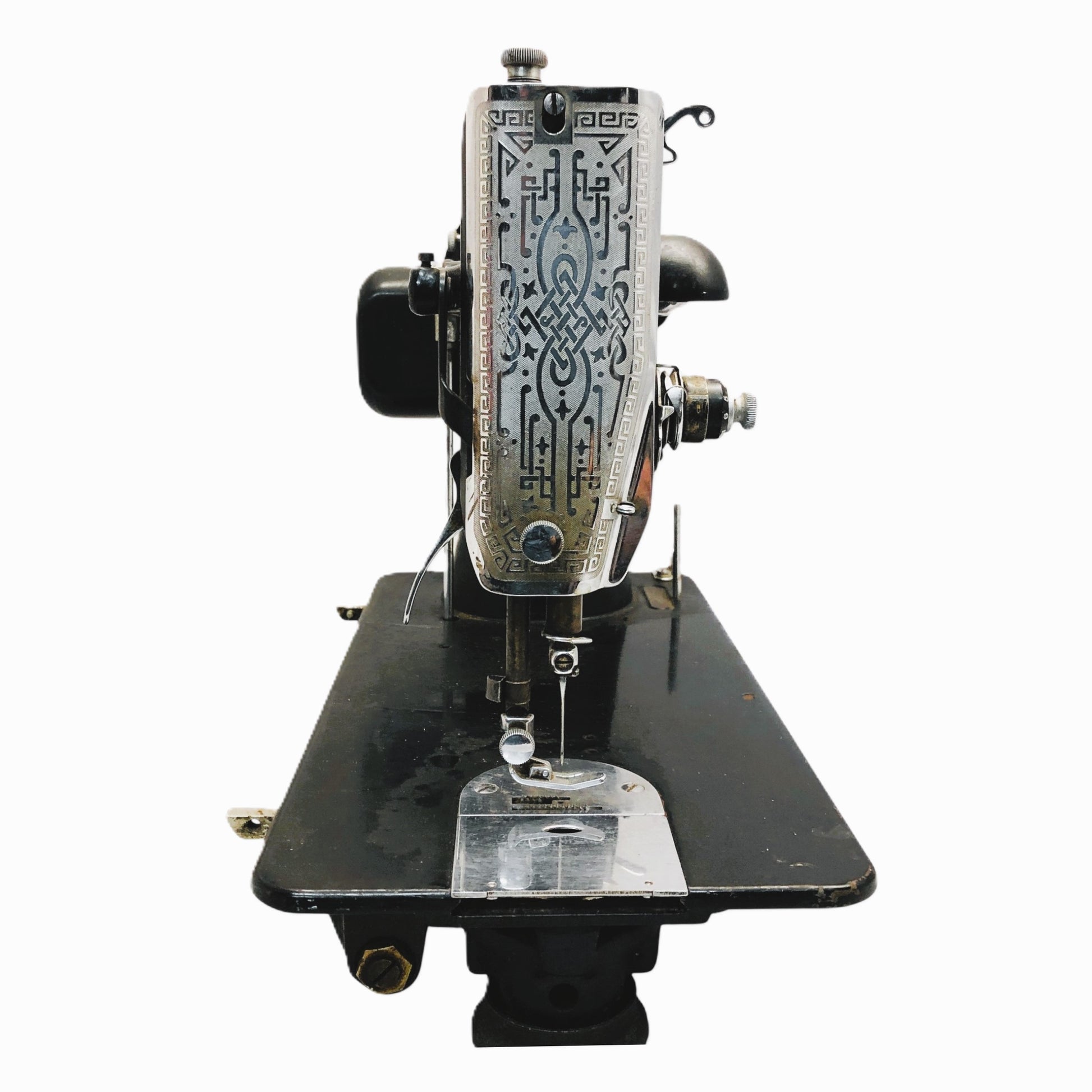 Boasting a sturdy, all-metal construction, this antique sewing machine features precise manual operation that allows for seamless stitching on a variety of fabrics. Its classic design, complete with intricate details and a nostalgic aesthetic, makes it not just a tool, but a statement piece for any arts and crafts enthusiast. Perfect for textile projects, from quilting to custom alterations, it delivers reliable performance with every use.