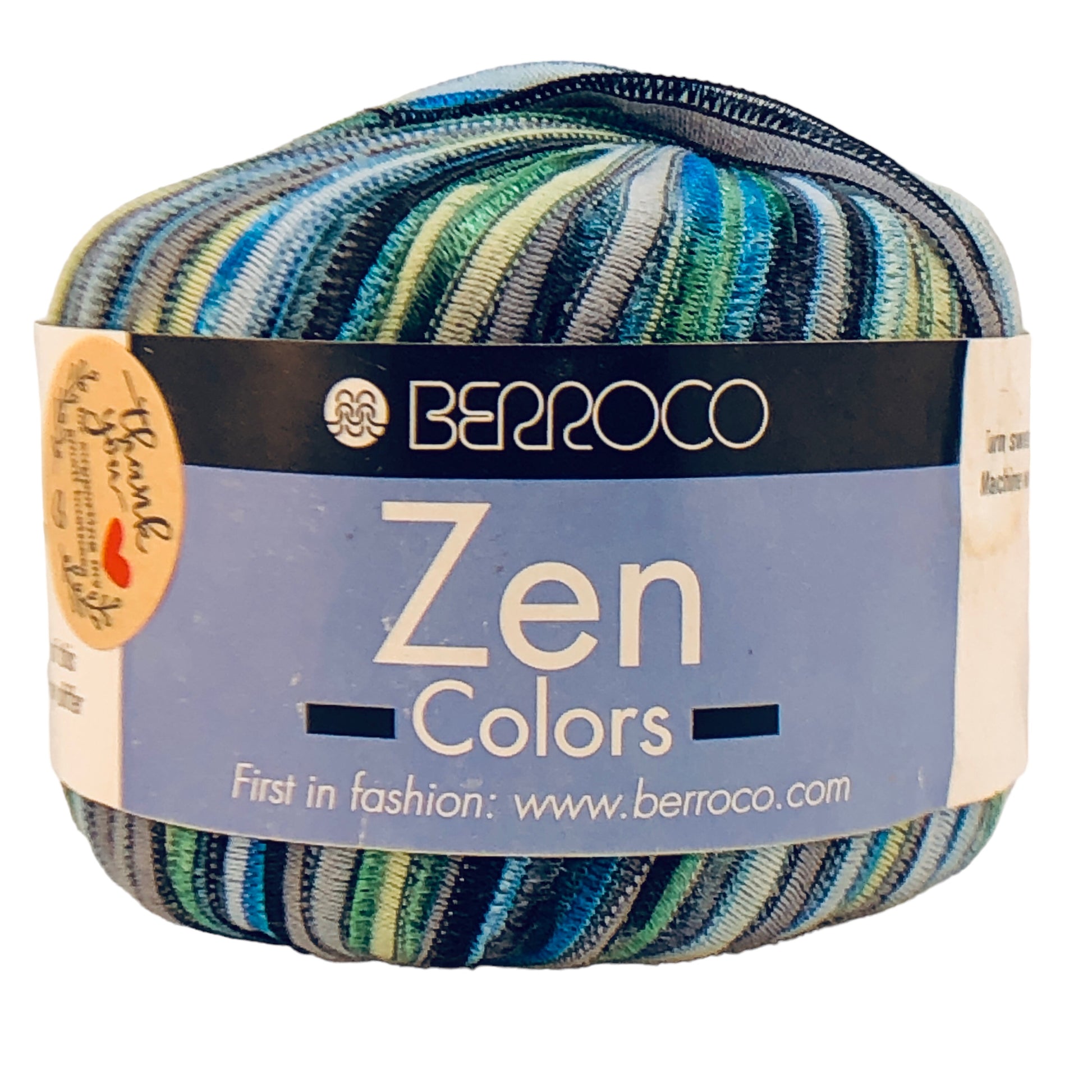 Discover the luxurious Berroco Zen Yarn in its stunning blue, green, and silver hues, perfect for elevating your knitting and crocheting projects to new heights. This premium yarn from Berroco combines the softness of high-quality fibers, offering a smooth, drapey texture that's a joy to work with and wear.