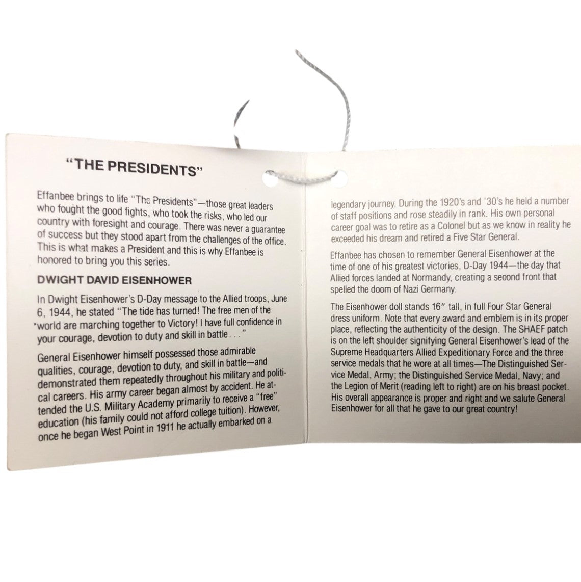 Effanbee Vintage Dwight D Eisenhower Collector's Doll is a timeless treasure for history buffs and doll enthusiasts alike. This meticulously crafted piece captures the essence of the 34th President of the United States, blending vintage charm with exquisite detail to celebrate American heritage. As a standout in the dolls category, it features realistic facial features and period-appropriate attire, making it an ideal addition to any collection of toys and games focused on historical figures.